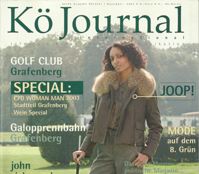 Das Magazin "Kö-Journal" präsentiert seinen Lesern Neuigkeiten rund um die Themen Mode, Lifestyle und Kultur. Der Fokus liegt auf News aus Nordrhein-Westfalens Landeshauptstadt Düsseldorf. Für die Redaktion berichtete ich als freier Redakteur von der CPD Women/Men 2003 in Düsseldorf. Neben Trends der kommenden Saison stellte ich in meiner Reportage die Designerinnen Annette Görtz und Anja Gockel vor.